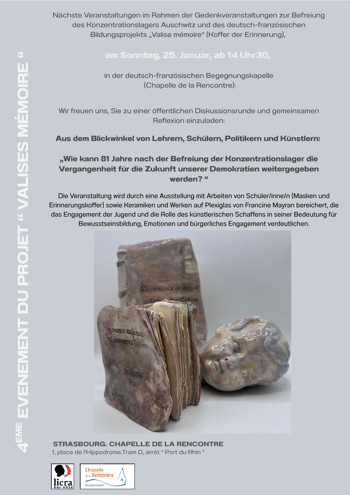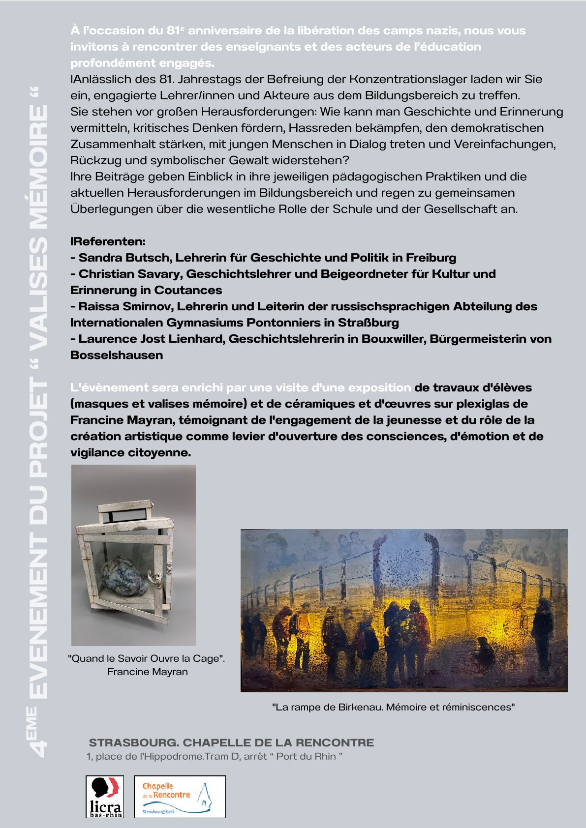 Table ronde d’échanges et de réflexion, ouverte au public « Regards croisés d’enseignants, d’élèves, d’élus et d’artiste : 81 ans après la libération des camps, comment transmettre le passé pour l’avenir de nos démocraties ? »