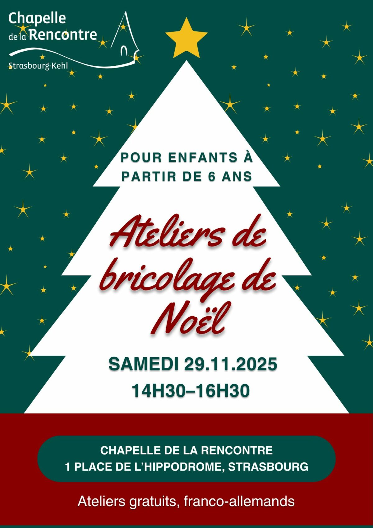 Nous préparerons des petits gâteaux de Noël (« bredele ») ainsi que des bricolages pour le sapin de Noël qui se trouve chaque année sur la place de l’Hippodrome.