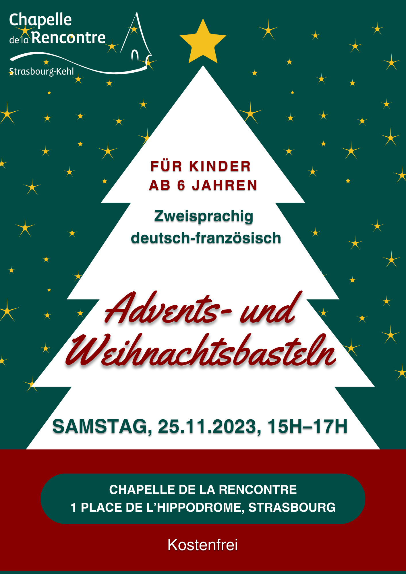 Nous préparerons des petits gâteaux de Noël (« bredele ») ainsi que des bricolages pour le sapin de Noël qui se trouve chaque année sur la place de l’Hippodrome.