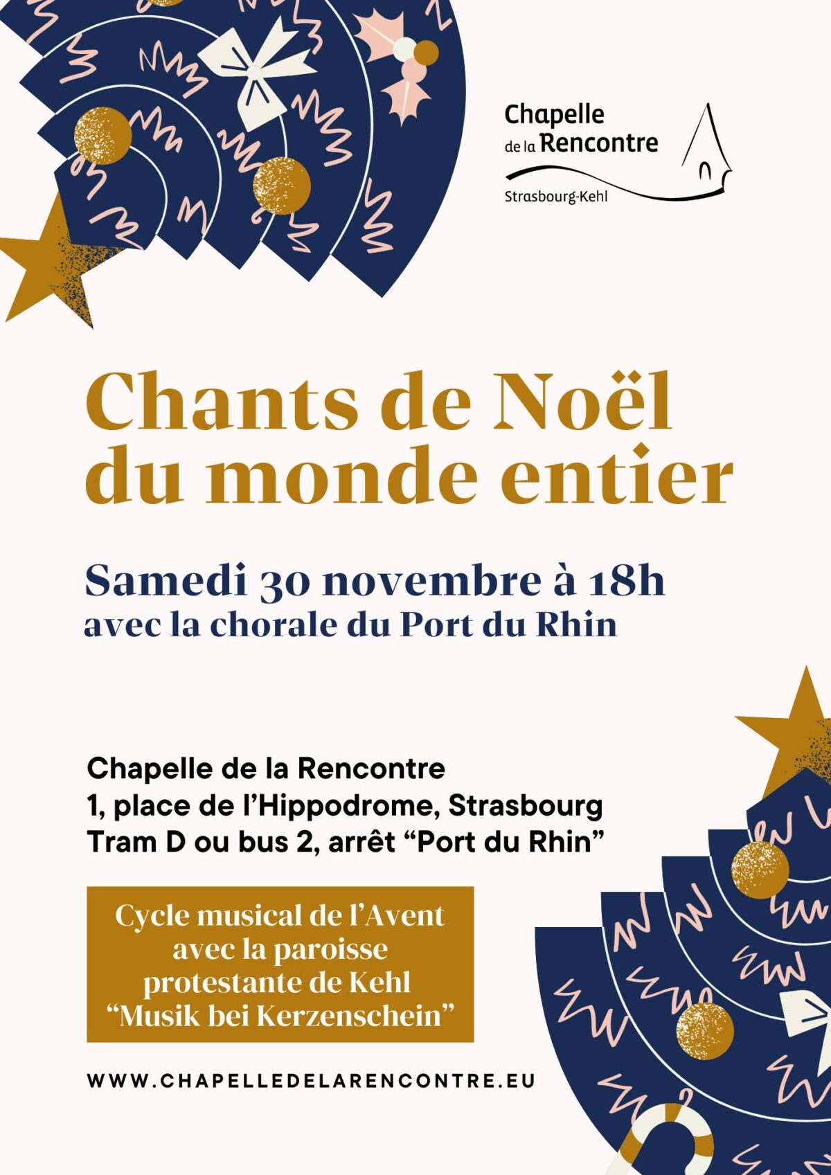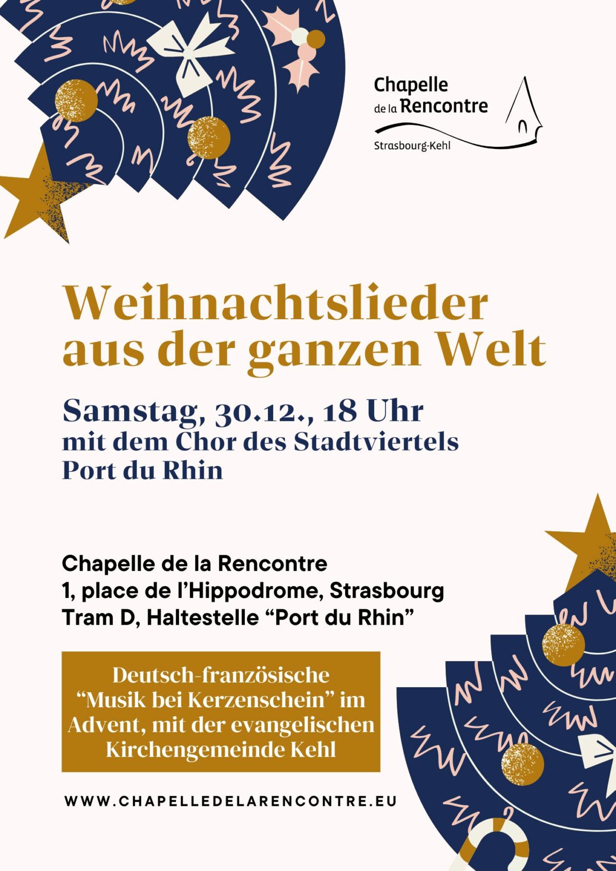 Samstag 30. November um 18 Uhr in der Begegnungskapelle (Chapelle de la Rencontre) : Advents- und Weihnachtslieder aus der ganzen Welt.